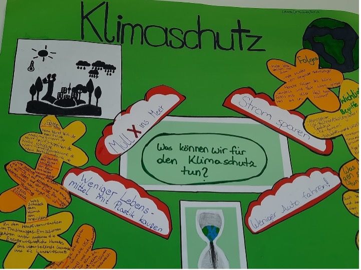 Wir erarbeiteten am dritten Tag, wie man ein gutes Plakat gestaltet. In einer anschließenden Gruppenarbeit erstellten wir Plakate zum Thema „Klimaschutz“ und wendeten unser neues Wissen an.
