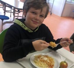 Gemeinsames Mittagessen in unserer Mensa (tägliche Auswahl zwischen drei Gerichten)
