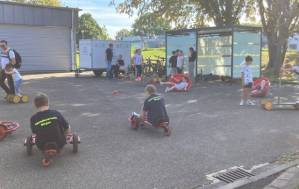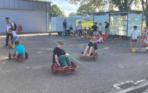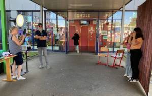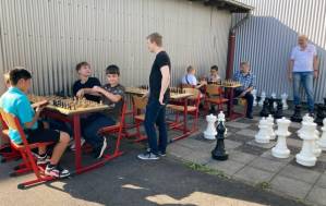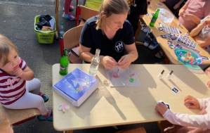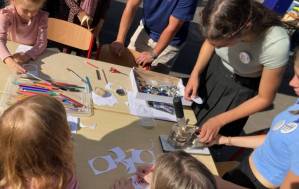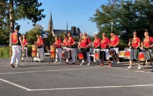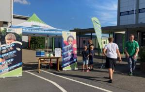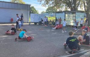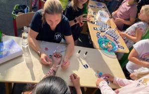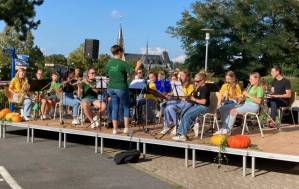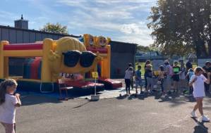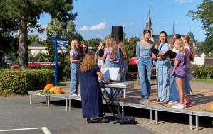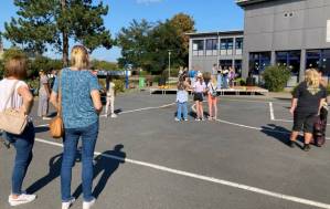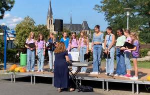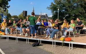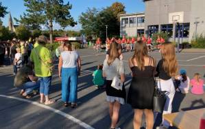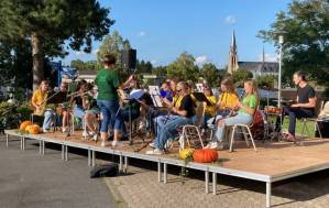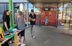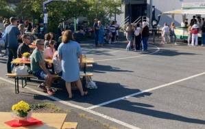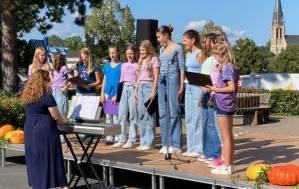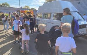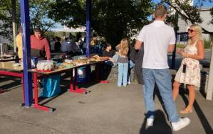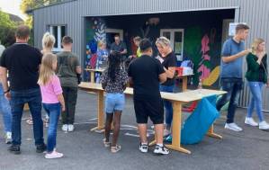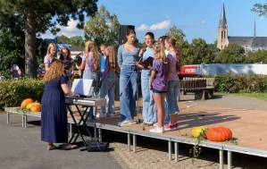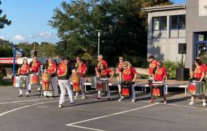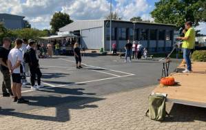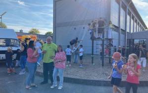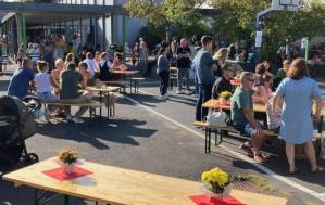 Fröhliches Beisammensein auf dem Schulhof der THRS+ mit Verköstigung, Vereinen, Musik und Spiel.