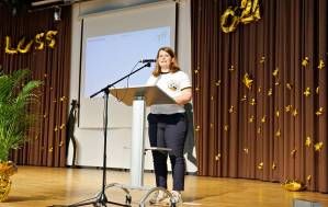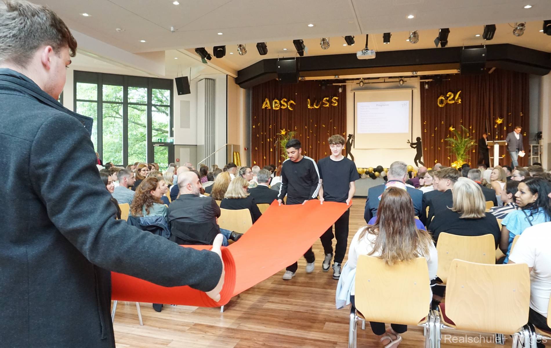 Verabschiedung der Abschlusklassen 9.1, 9.2, 10.1 und 10.2 mit dem Motto "Rollt den roten Teppich ein, die VIPs ziehen weiter".