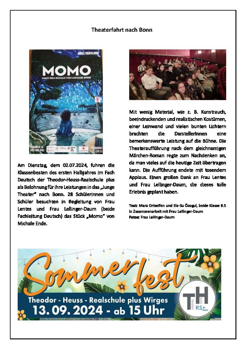KW 31/24 Theaterfahrt der Klassenbesten im 1. Hj. im Fach Deutsch