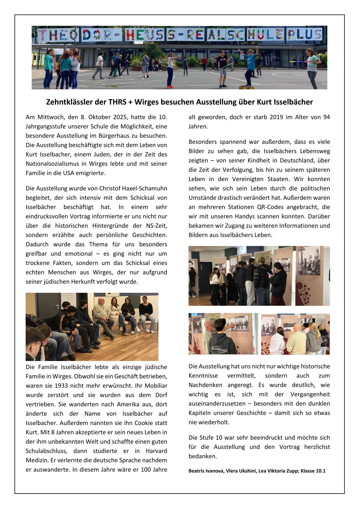 Wir freuen uns sehr über Ihr Interesse an unserer Schule. Datenschutz hat einen besonders hohen Stellenwert für die Theodor-Heuss-Realschule plus in Wirges. Eine Nutzung der Internetseiten der Theodor-Heuss-Realschule ist grundsätzlich ohne jede Angabe personenbezogener Daten möglich. Sofern eine betroffene Person besondere Services unserer Schule über unsere Internetseite in Anspruch nehmen möchte, könnte jedoch eine Verarbeitung personenbezogener Daten erforderlich werden. Ist die Verarbeitung personenbezogener Daten erforderlich und besteht für eine solche Verarbeitung keine gesetzliche Grundlage, holen wir generell eine Einwilligung der betroffenen Person ein.