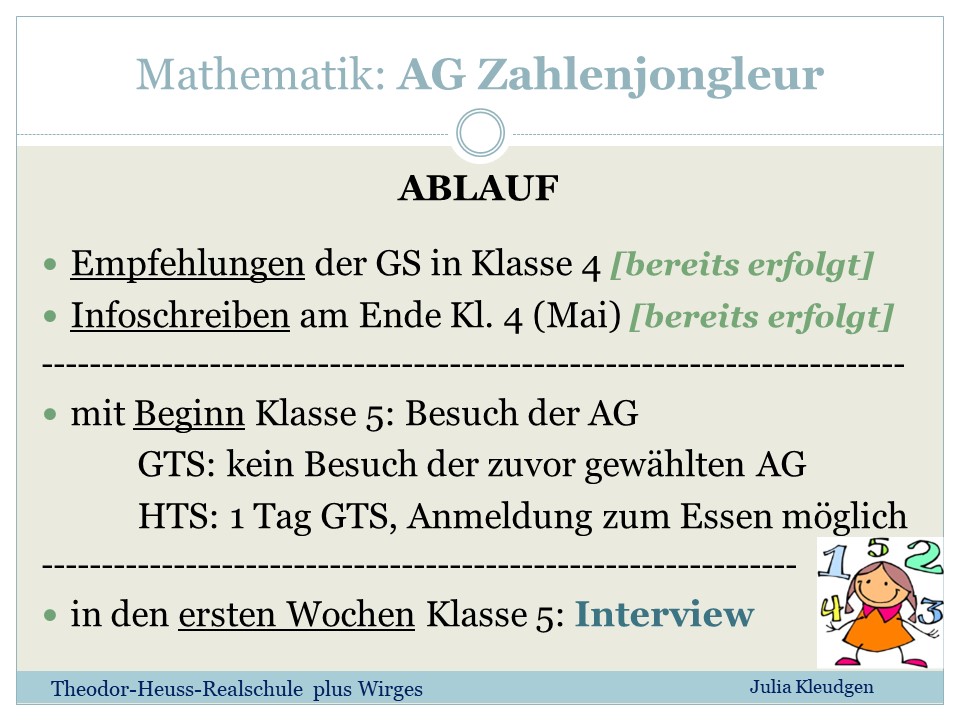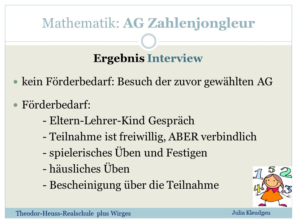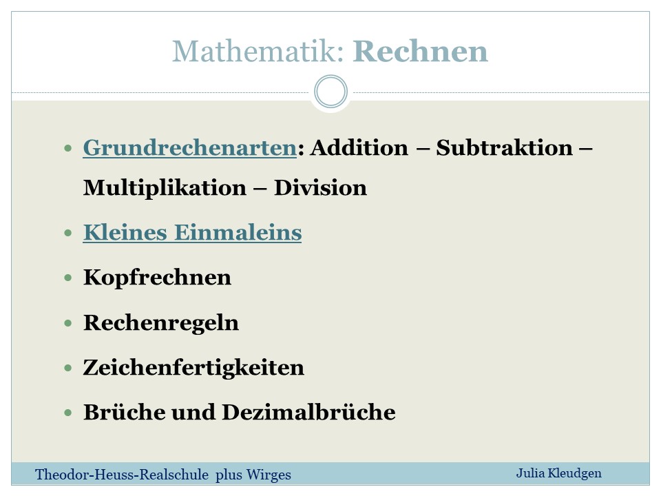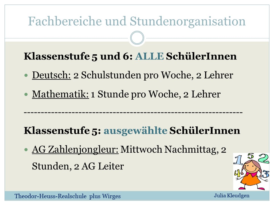 - 1 Stunde pro Woche mit Schwerpunkt "Rechnen"